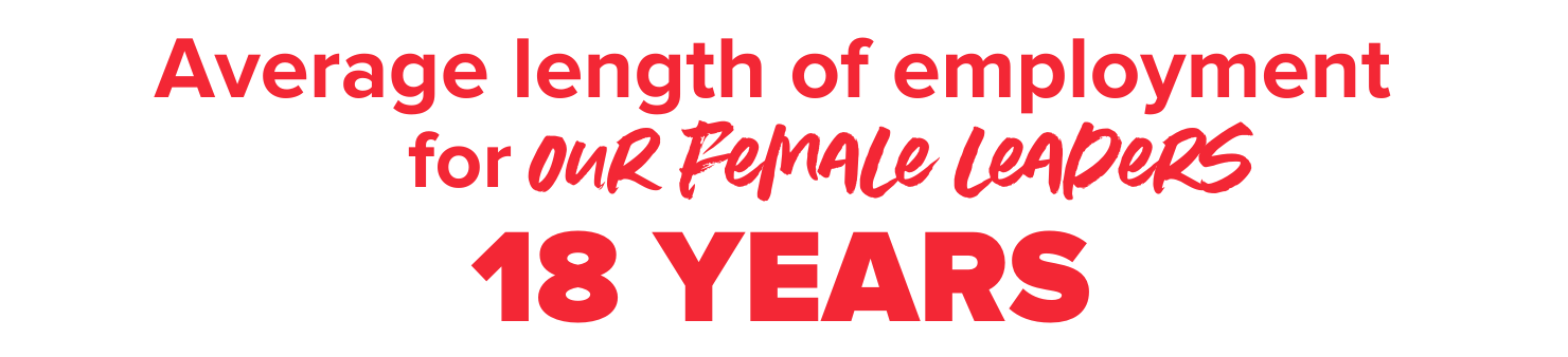 In an industry typically dominated by men, our commitment to women leaders is demonstrated by the length of employment of our top female leaders, averaging 18 years at CBH.