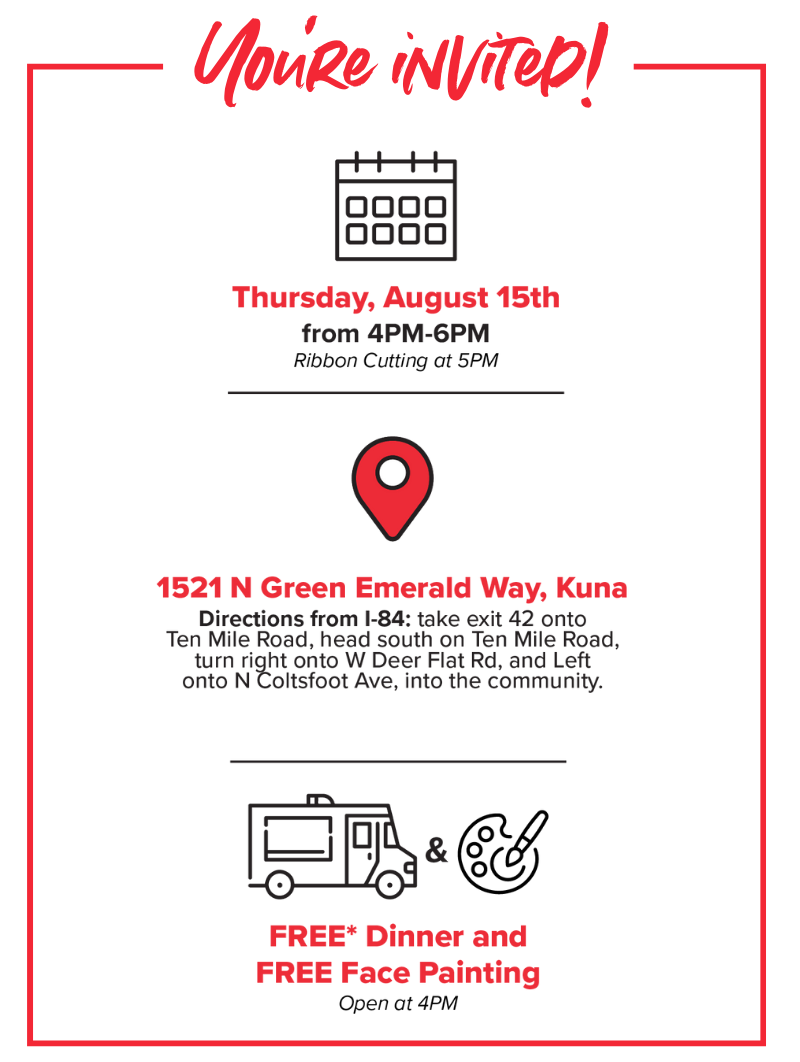 It’s the final countdown and you’re invited to join us in celebrating Kuna’s newest community, August 15th!