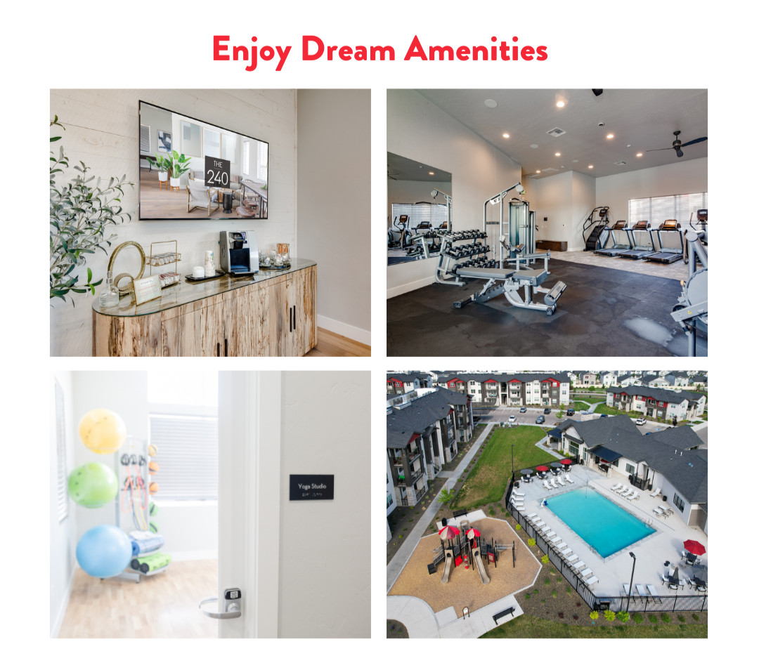 Dive into relaxation with our expansive pool, perfect for a refreshing escape during the summer months. Stay active and energized with our Fitness Center and Yoga Studio, designed to cater to all fitness levels and preferences. Need a pick me up? Head over to the clubhouse coffee bar for your favorite brew.