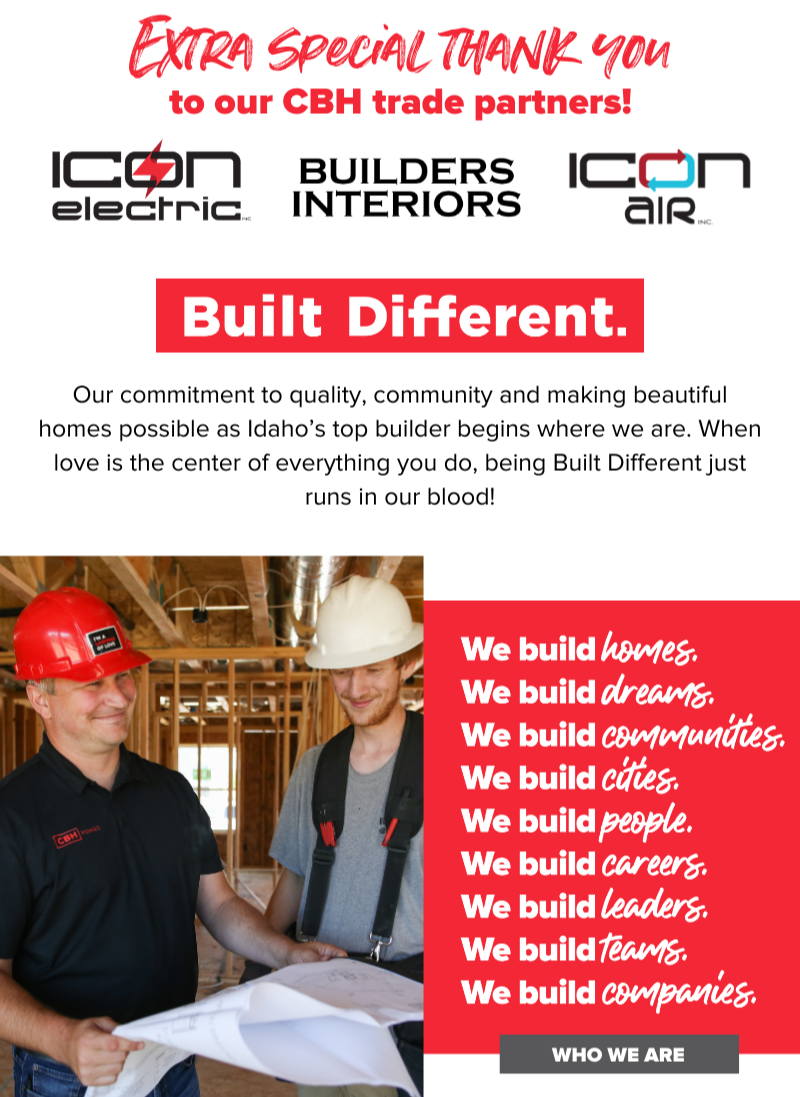 CBH Homes has been building dreams for Idahoans for over 31 years, and for 19 of those, named Idaho’s #1 Builder. CBH Homes is also an Idaho Best Place to Work, now ranked #48 in the nation and proudly working with over 25,000 happy homeowners. New homes available now in Boise, Idaho and surrounding areas. Start shopping today, click here!