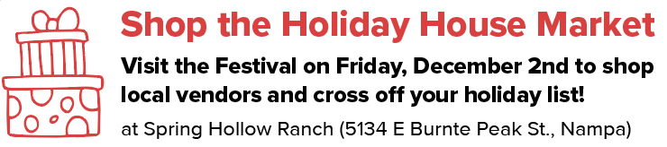 We are bringing together over 15 local creators to come join us at our staged homes to hold an indoor Magical Holiday Shopping Experience! Located in our Spring Hollow Ranch Community in Nampa, shoppers will be able to walk through our fully staged Festival Homes and find a new vendor in each room! We will also have FREE Food there from Rusty Dog Food Truck & wine tasting from Vizcaya Winery. This Holiday House Market will be the perfect stop on your holiday shopping trip.