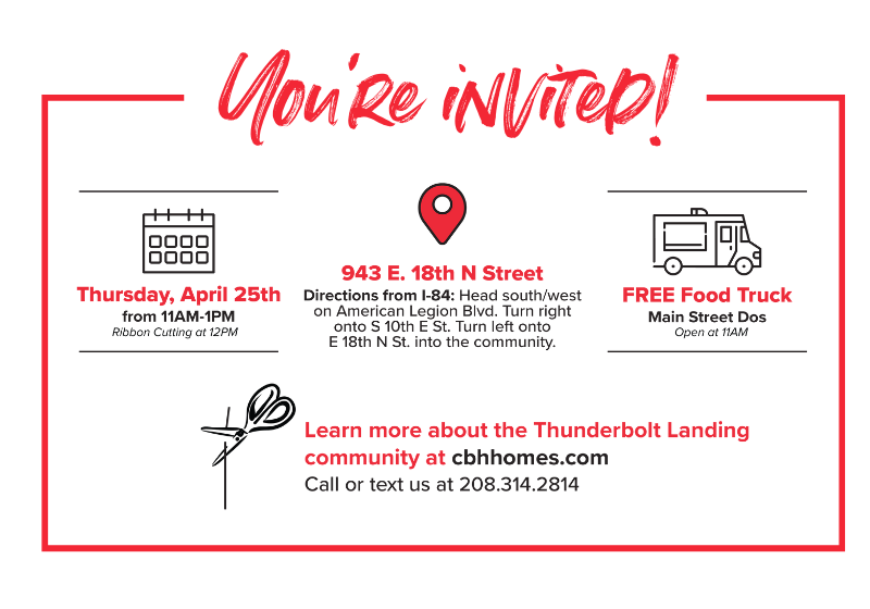 Our newest development is the talk of the town in Mountain Home, and we want YOU to be part of the excitement! Get ready for an unforgettable experience at our newest community with a celebration. We are thrilled to personally invite you to the Grand Opening and Ribbon Cutting of Thunderbolt Landing, our newest CBH community in Mountain Home! This is your chance to be at the forefront of something truly special. Don’t miss out – stay tuned for exciting updates on this new community!